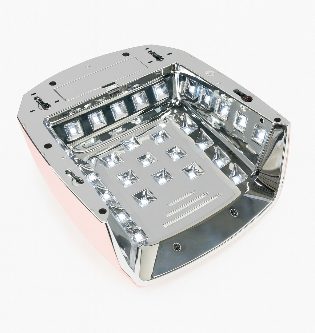 Una base a specchio integrata e un soffitto a specchio all'interno garantiscono una distribuzione uniforme della luce da tutti i lati. Ciò significa che la luce UV/LED viene riflessa in modo ottimale e circonda l'intera unghia, anche dal basso. Il risultato è una modellazione perfettamente curata, senza ombre o bordi non curati.