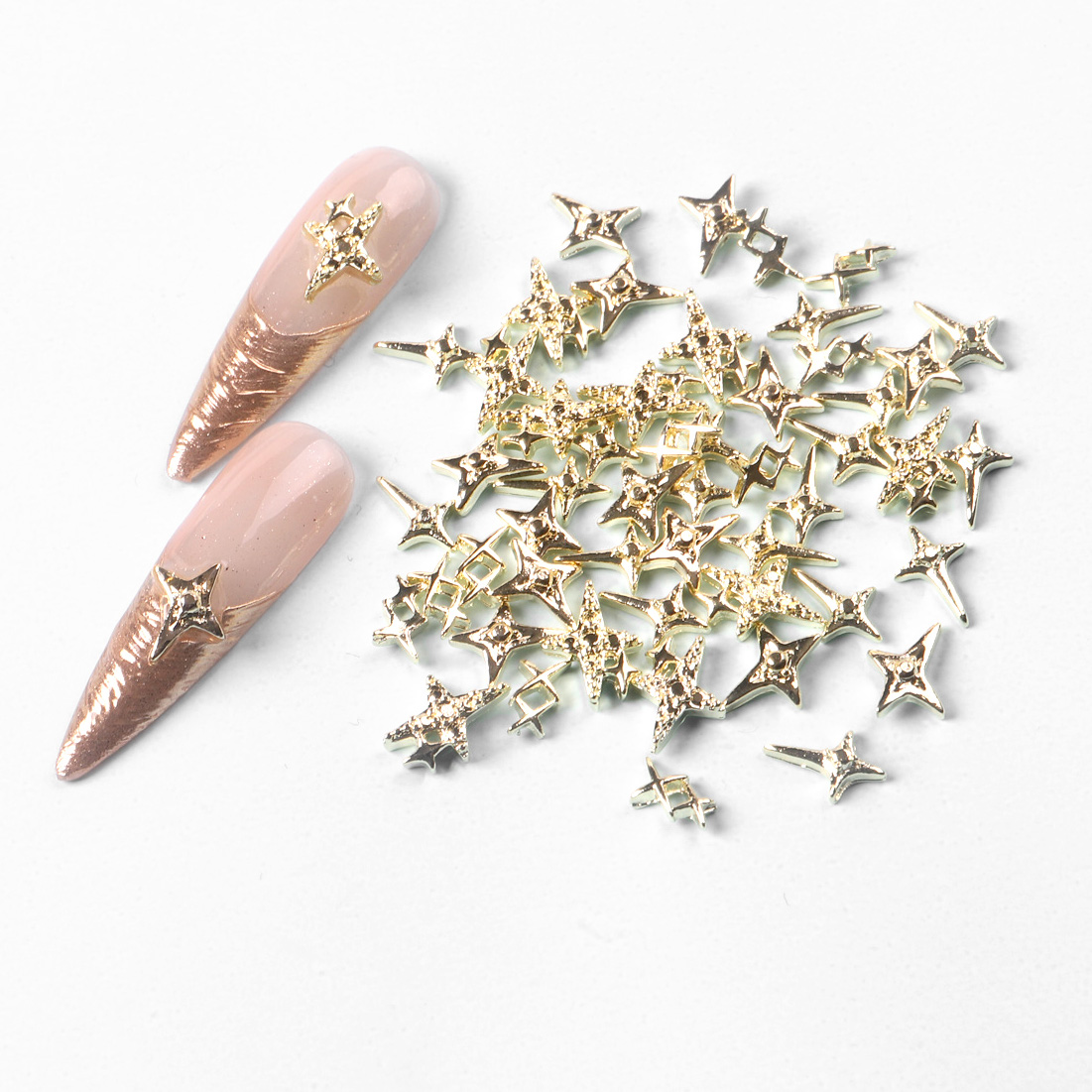 Questo mix di alta qualità contiene 50 eleganti charms in metallo di varie forme, perfetti per creare creazioni accattivanti, glamour e creative. Che si tratti di stelle, corone, croci o mini ornamenti scintillanti, ogni singola copertura è facile da posizionare sull'unghia e offre una finitura di lusso.