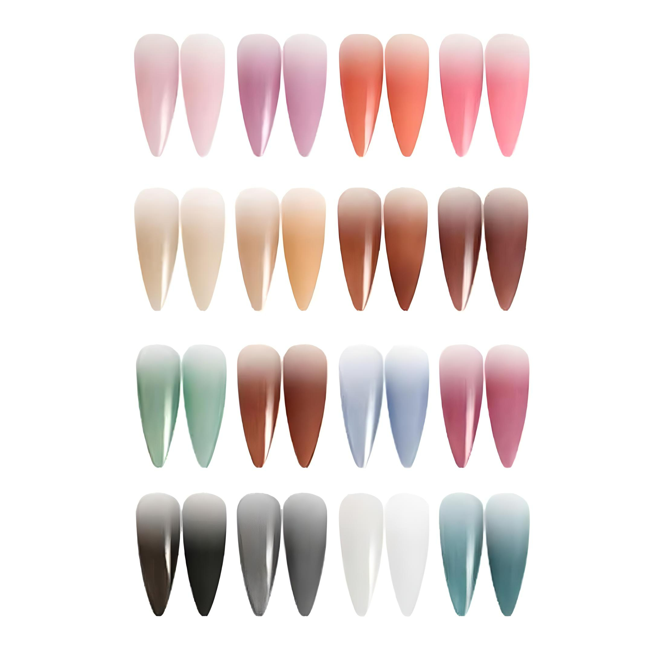 16 colori diversi, altamente pigmentati, per creare unghie ombreggiate e nail art